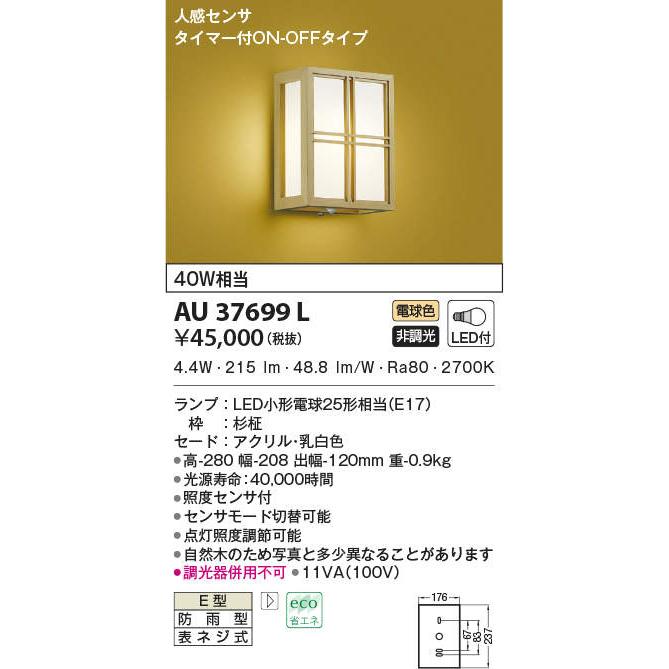 コイズミ照明 Aul 和風照明 玄関灯 人感センサ付 タイマー付on Offタイプ Led付 電球色 白熱球40w相当 防雨型 まいどdiy 2号店